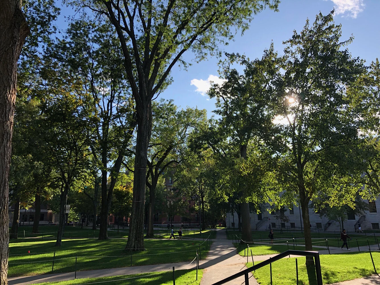 캠퍼스는 유명한 하버드 야드(Harvard Yard)에 중심을 두고 있다. 윌리엄 제임스(William James), 헨리 아담스(Henry Adams) 및 기타 지식인의 목소리와 울려 퍼지는 듯한 이 야드를 둘러싼 조지아식 벽돌 건물들은 신입생들의 기숙사이다. John Harvard Statue도 있어 관광객이 가장 많이 모이는 곳도 이곳이라 생각된다. 신입생들의 기숙사는 이곳 하버드 야드 외에 다른 곳도 있으나 많은 학생들이 하버드 야드에서 하버드의 생활을 시작한다. 하버드 야드는 차의 출입이 통제가 되는 곳이다. 하지만, 학생들이 기숙사에 입실하는 날(Move-in day)에는 차를 제한하며 건문 앞까지 갈 수 있어 학생들의 짐을 차에서 내릴 수 있게 했다. 필자의 기억으로는 한 건물을 제외하고는 엘리베이터가 없어서 학생들이 짐을 높은 층수까지 들고 옮겨야 했다. 건물 안은 학교의 오랜 전통을 책상과 책장에서 오랜 전통을 느낄 수 있었다. 8월 말 조금은 관광객이 작은 시기에 아이의 기숙사 방에서 하버드 야드를 내려다보았을 때 고즈넉한 모습도 남아있다.