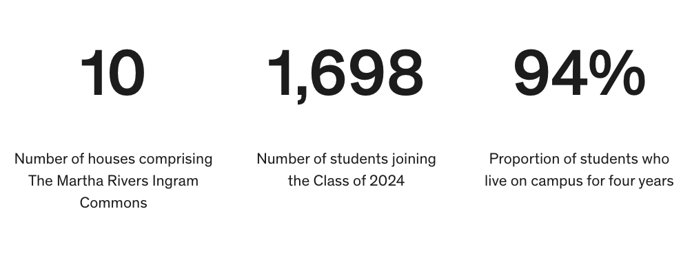 밴더빌트 대학의 커뮤니티는 강한 연대감을 형성할 수 있는 다양한 기회를 제공한다. 모든 신입생은 10개의 기숙사로 이루어진 마사 리버스 잉그램 커먼스(Martha Rivers Ingram Commons)에서 생활하며, 밴더빌트 비전스(Vanderbilt Visions)라는 프로그램을 통해 공동체 의식을 키운다.