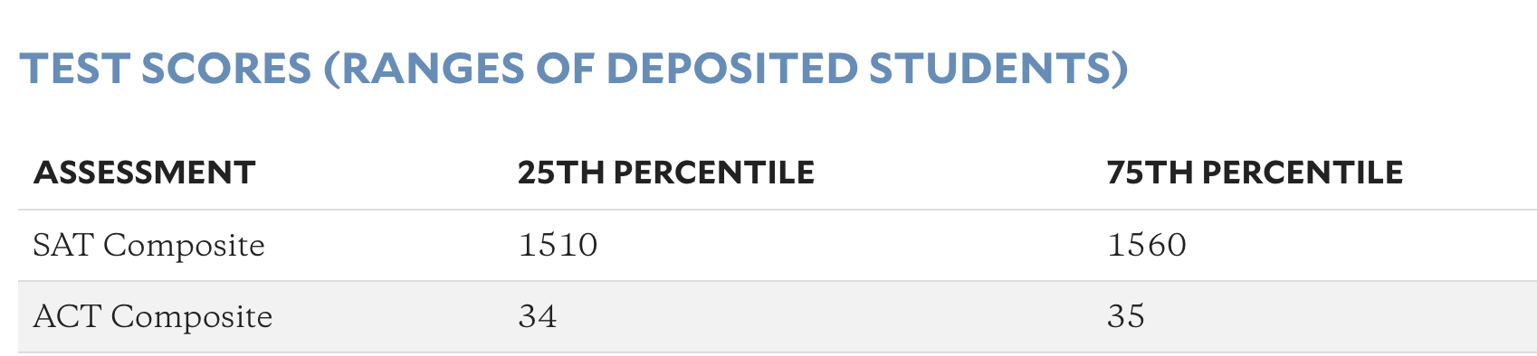 Class of 2028에서 Rice University의 입학생들은 SAT 및 ACT 점수 분포는 매우 높다. SAT 종합 점수(SAT Composite)의 1510점에서 1560점으로 나타난다. ACT 종합 점수(ACT Composite)도 마찬가지로 34점에서 35점 사이에 분포하며, 이 역시 학생들이 탁월한 시험 성과를 보였음을 강조한다.