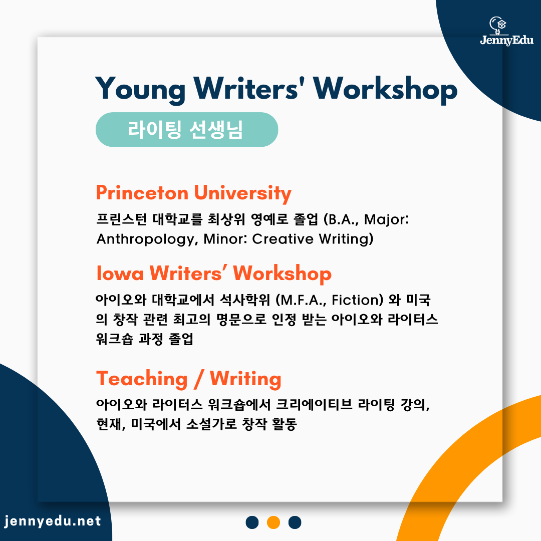 영라이터스 워크숍 - JennyEdu Young Writers’ Workshop | JennyEdu 제니에듀 컨설팅 | 미국 유학, 대학 입시 전문 교육 컨설팅